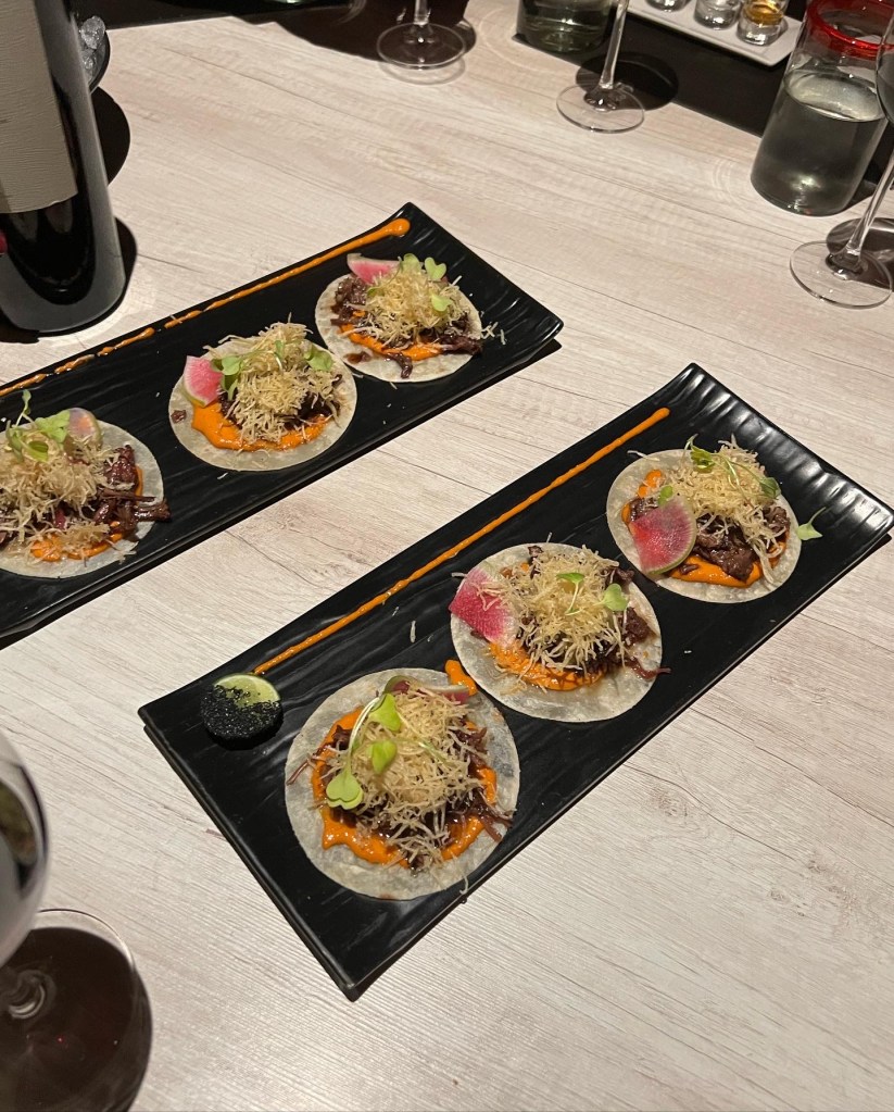 Must try: Short Rib Tacos. Lemme say it again… the short rib tacos. Surf & Turf, Yellow Ceviche, Churros