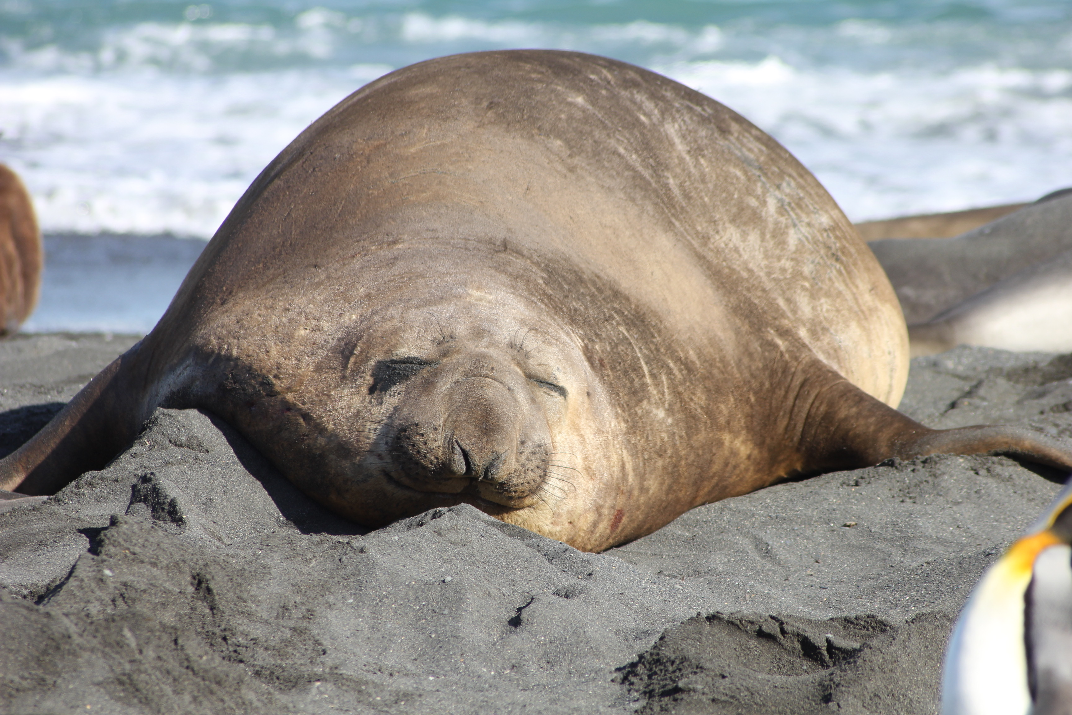 Even though whales absolutely terrify me, they had nothing on the elephant seals. The sounds and movements of elephant seals is permanently engrained in my mind forever. Elephant seals are the largest seals on the planet and each year the seals take a month or so to shed their old, damaged, worn fur for a new coat that will protect them better while in the water. The fur comes apart in big patches like you see in the photos, and elephant seals have to beach to go through the process, which would be too cold in the ocean. The young males use their time ashore to stage mock fights, practicing their skills for another year when they had real fights to pick. You definitely don’t want to end up under one of these guys.