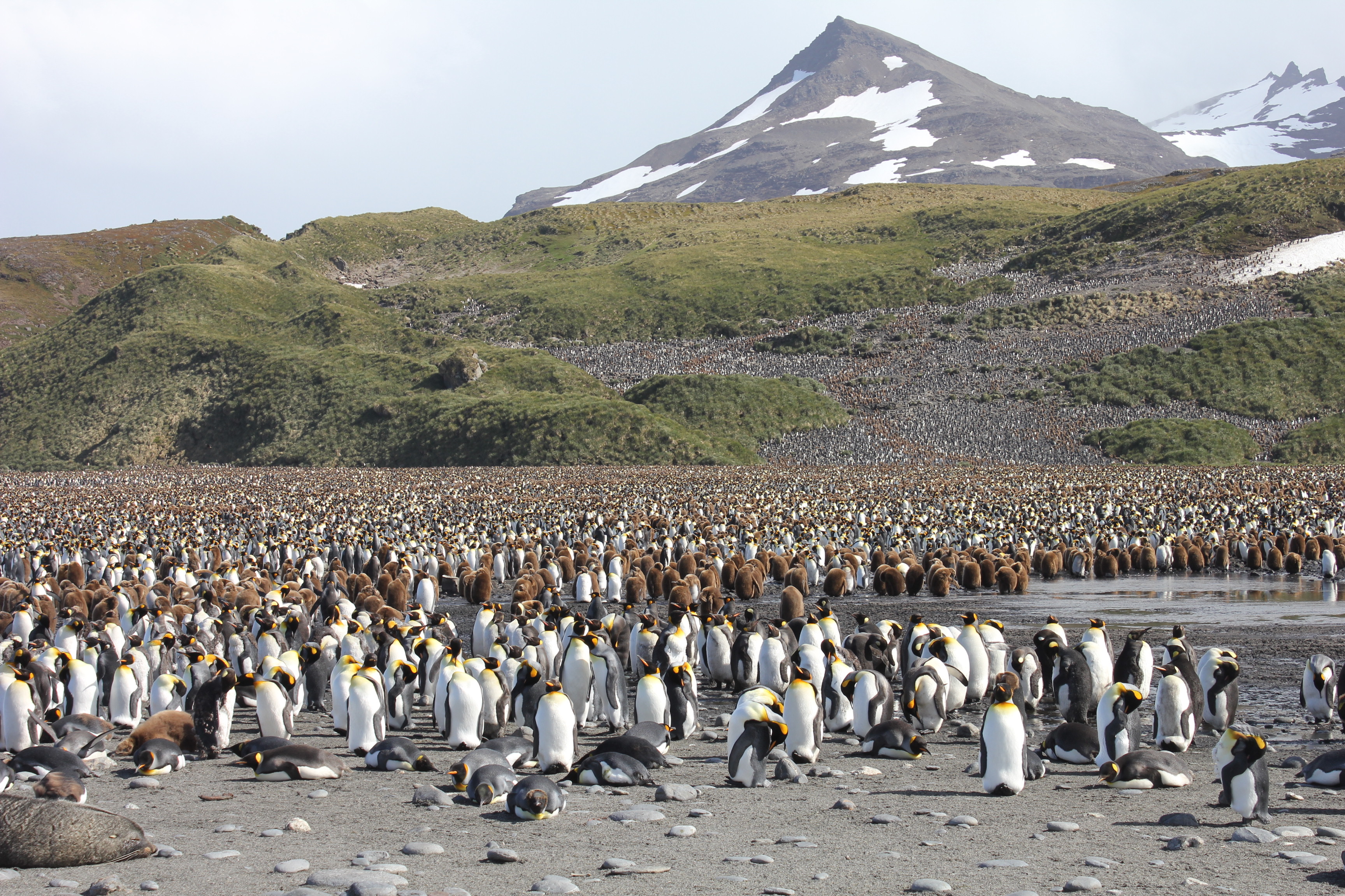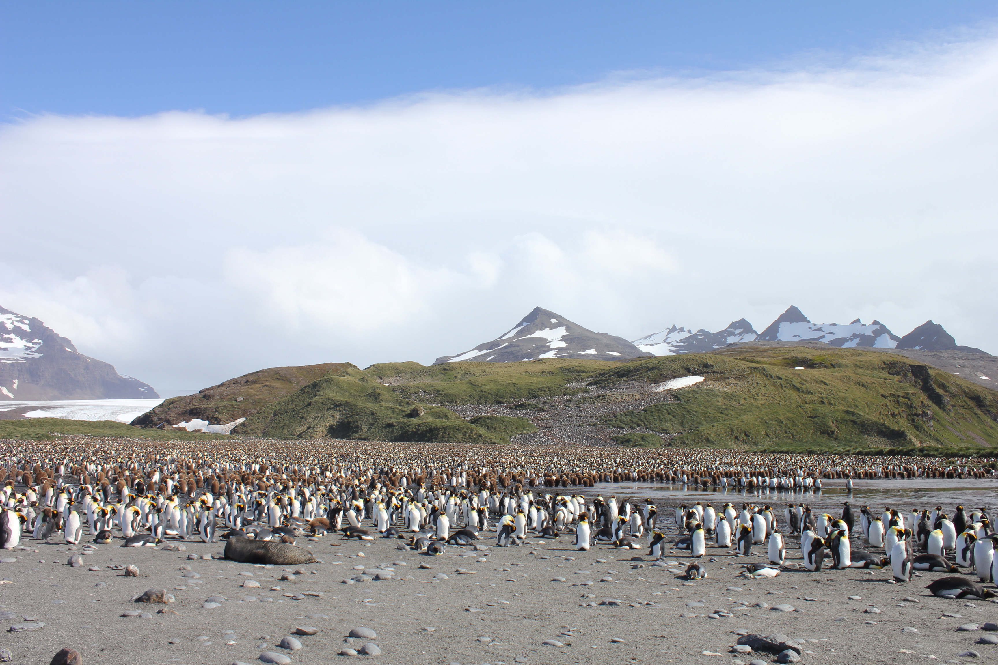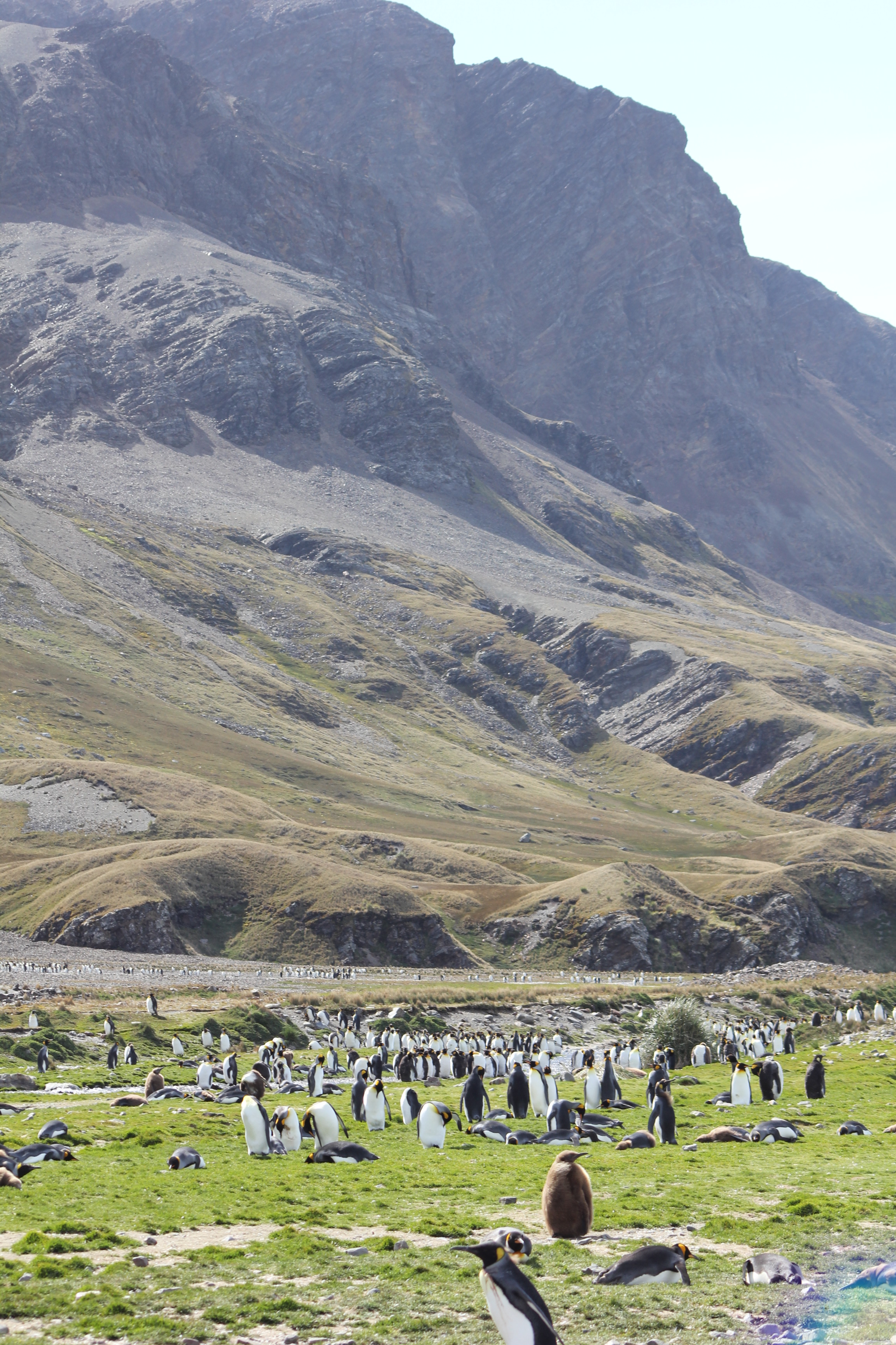 Gold Harbour, the home to more than 25,000 breeding pairs of king penguins, gentoos, and numerous elephant seals, was our first stop in South Georgia. It lies at the foot of the Salvesen Mountains with a long coastline. We were able to walk through the colony of penguins, watching as they waddle beside us and get close enough to touch. As cute as they are, they did smell horrible, often leaving us covering our noses. I’d happily cover my nose for hours again if it meant seeing this view.