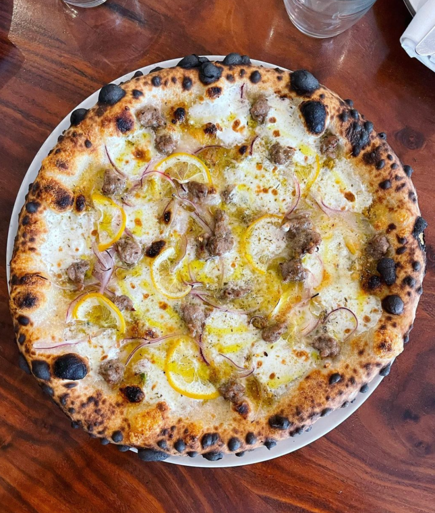 Must Try: Meyer Lemon Pizza, Cacio e Pepe Arancini, Tutti Frutti Snap Peas, Tijuana Caesar Salad