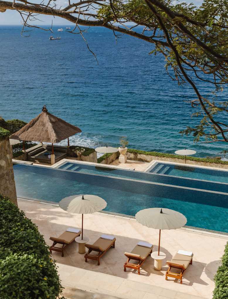 Perched on the edge of a towering 500ft sea cliff in Uluwatu, near the charming village of Pecatu, The Edge offers a remarkable opportunity for guests to indulge in sheer luxury, seemingly on the brink of the world. Each villa and its bedrooms boast breathtaking views that stretch across the vast expanse of the Indian Ocean.
