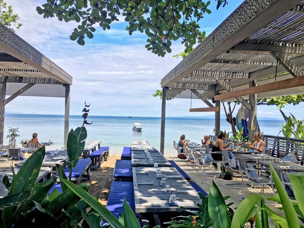 With its distinctive beachside design, characterized by the use of recycled teak wood, hand-painted tiles, and inviting lounge banquettes, this place become my regular spot. Moreover, the stunning views of the East Bali coastline, Mount Agung, and Nusa Penida across the water add the perfect finishing touch to this remarkable setting.