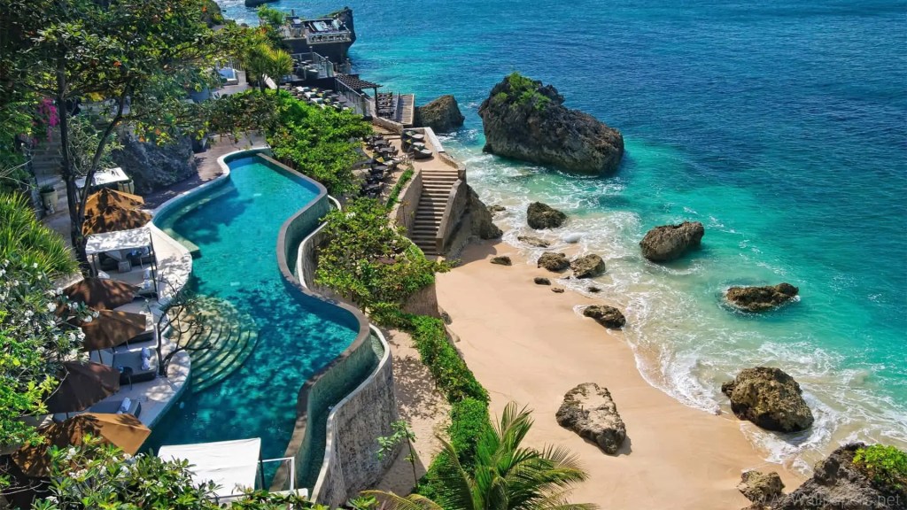 Ayana is a 5-star beachfront resort with cliff-top land perched above the beautiful, blue Jimbaran Bay. Private white-sand beach, 19 restaurants, and 12 swimming pools are just a few of the resort’s highlights.