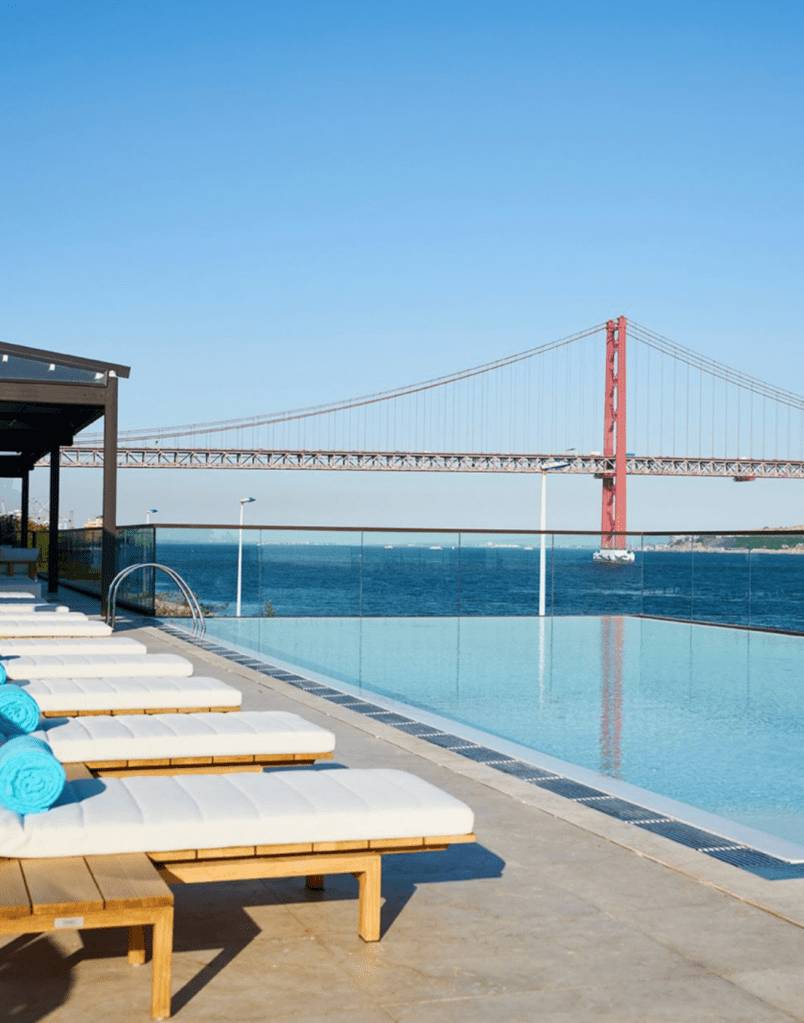 SUD is three different venues in one. Enjoy authentic Mediterranean gastronomy on the terrace or head up pool lounge on the top floor for stunning views of the 25 de Abril Bridge and Cristo Rei with an infinity pool, signature cocktails and live-acts. The hall is reserved for events. If you’re looking to have lunch near the water, SUD is a great option.