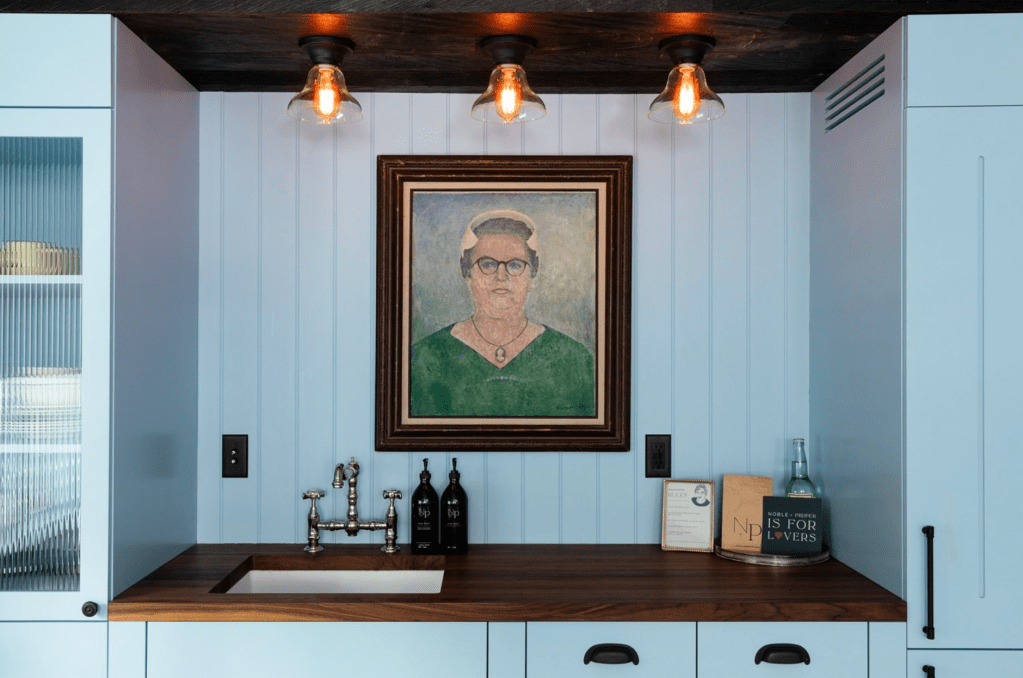 All of the cabins at Noble + Proper are named and themed after the owner’s beloved family members. There are seven 830-square-foot cabins on the property with two bedrooms and one-and-a-half baths. There’s also a 3,000-square-foot cabin with four bedrooms and three-and-a-half baths on offer as well. Each cabin has an outdoor area with bikes, BBQs, picnic tables, hammocks, and horseshoes for guests to enjoy.