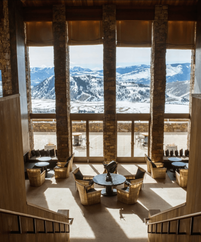 Amangani is as luxury as it gets. It’s part of Aman Resorts, a wellness-oriented global hotel and resort chain beloved by celebrities and the ultra-wealthy. Sweeping views of the Tetons and panoramic views of Jackson Hole are the perfect background for this unbelievable resort. Unlike some other Aman hotels, Amangani’s lounge is open to outside guests, which results in many locals coming in for a drink and live music on the weekends.