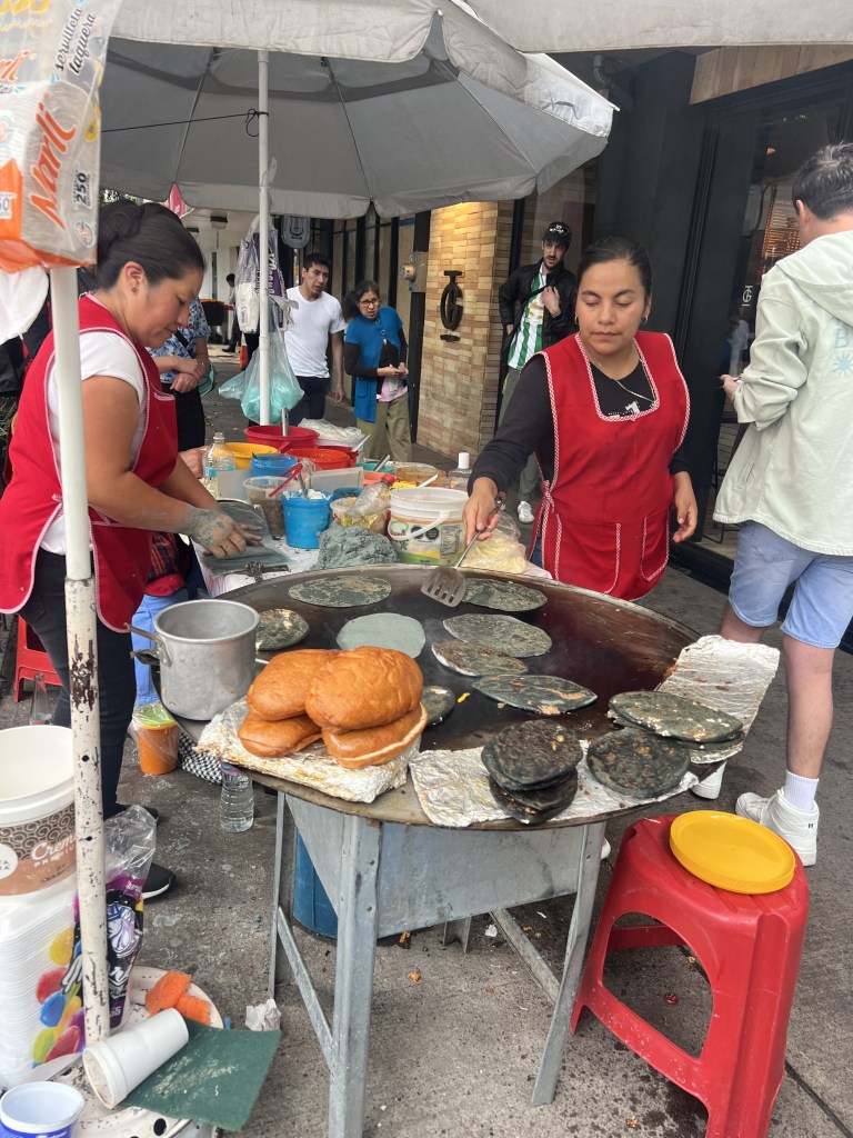Jenni, the famed quesadilla lady of Roma Norte, is located on the corner of Colima and Merida every day around noon serving up quesadillas with your choice of fillings. Everything is delicious and it’s the blue jean-colored corn tortilla that brings everything together. Cash only!