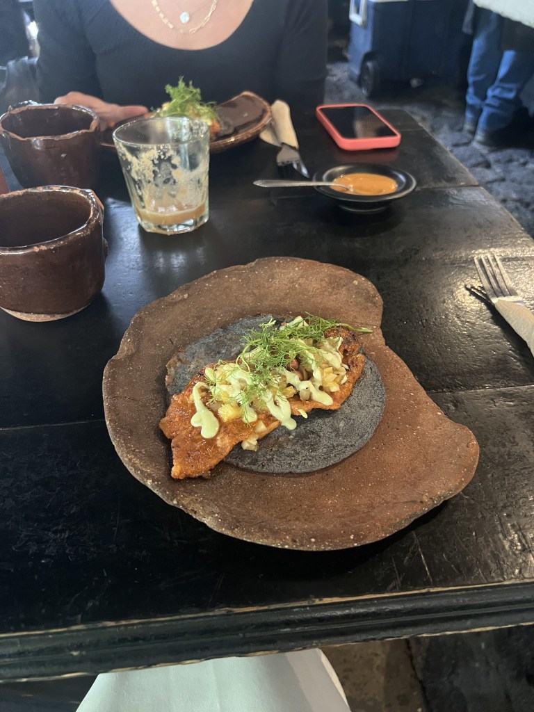 This was one of the most unique dining experiences I’ve ever had. Expendio de Maíz welcomes diners to sit at one of four long tables set up under a covered sidewalk. Although there are no reservations, guests can put their name on a list for the next seating. This dining experience doesn’t feature a traditional menu; instead, each dish is presented as a surprise, one by one, until you say stop. Every bite is excellent. Reminder, it’s cash only!